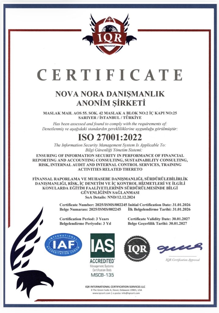 Independent assurance and trust: Certification is granted following external audits. It provides clients and partners with third-party validation that Nova Nora follows internationally accepted security practices.